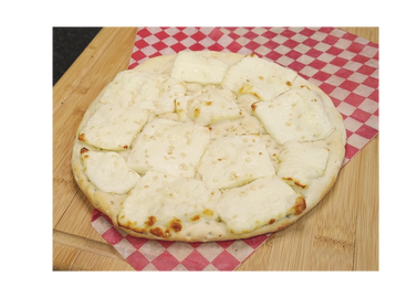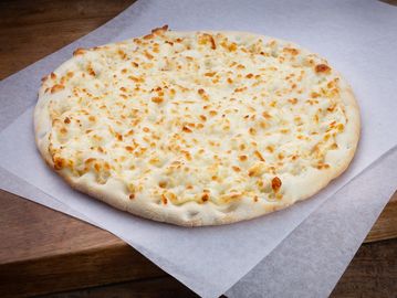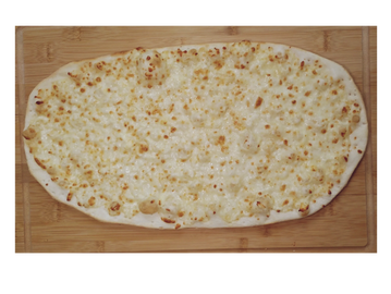 Golden baked flatbread covered in a creamy blend of perfectly melted cheeses.