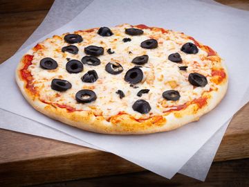Golden flatbread layered with tangy pizza sauce, melted cheese, and savoury black olives.