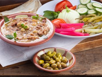 The healthy Ful Brunch platter, contains fava beans and chickpeas mixed together with seasoning and olive oil.