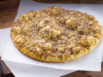 Fragrant zaatar blend with thyme, sesame, and oregano baked onto warm flatbread, finished with melted cheese.