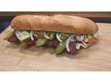 Tender, thinly sliced halal beef piled into a fresh sandwich, finished with your choice of toppings.